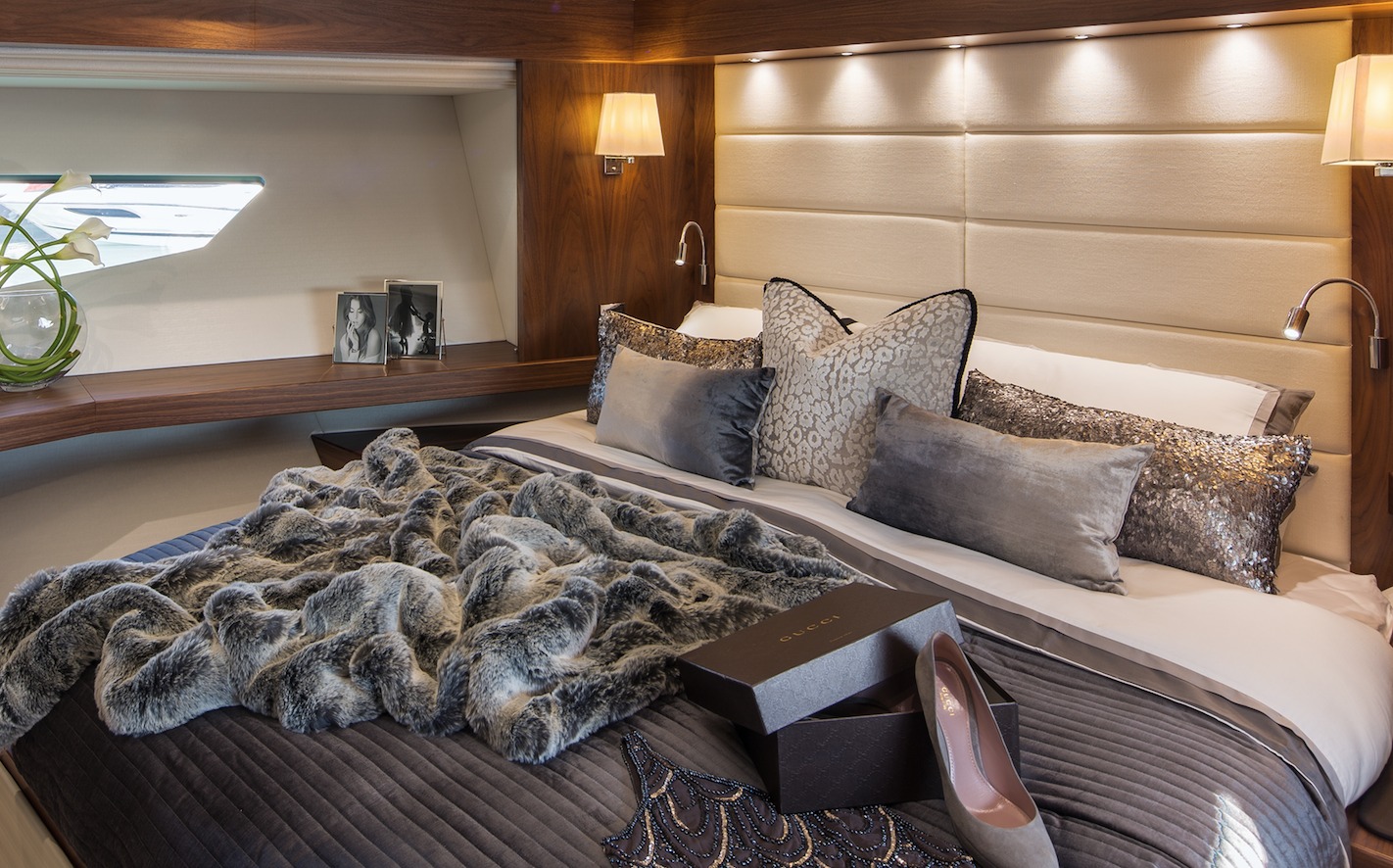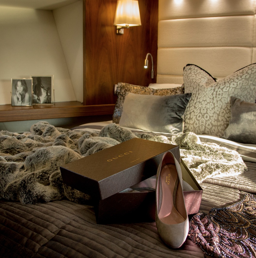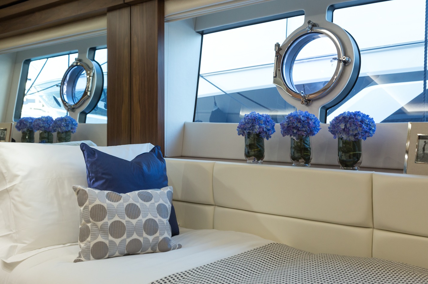 Alexander James Interiors dressed and styled the interior of the impressive Sunseeker 86 Yacht with a collection of soft furnishings and home accessories to compliment and enrich the already exquisite styling found on board a Sunseeker motor yacht. With twenty years’ experience in creating award-winning interiors, the special styling of the 86 Yacht introduced an extra dimension to a luxury partnership between the two brands.
