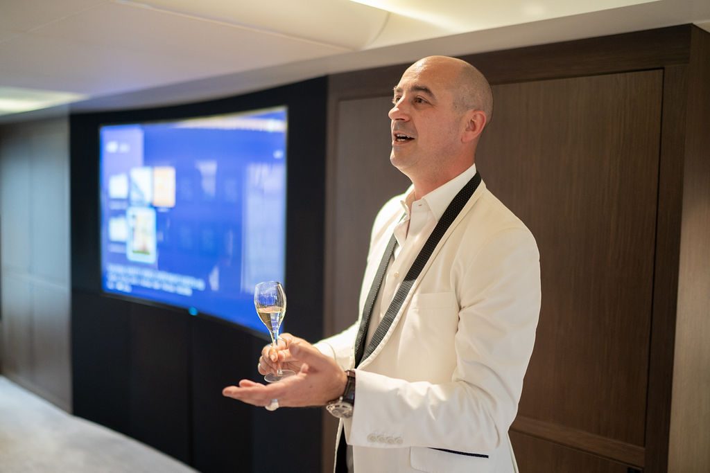 Onboard, guests indulged in the finest caviar at the Simon Johnson caviar station, which was beautifully paired with the newly released Pommery Apanage Blanc de Blancs Champagne.