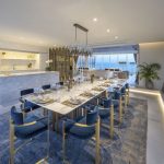 The four-bedroom Presidential penthouse’s design elements whisper, rather than shout. With furniture from Meridiani and Arca Horn, the interiors, worth upwards on AED4million (USD$1.1million), appeal to today’s tastes and preferences. While there are sharp accents and punchy palettes, they are maintained within clean lines and well-positioned minimalism. There is simplicity in the form and quality of the decorative ornaments – which all nod to the zeitgeist of intuitive and intelligent design. The upholstery, too, captures the minimalist moment of the now with a number of sofas from Ulivi Salotti. Of course, there are suitably statement features dotted around like the Brand van Egmond pendant lighting in the men’s cave – which is particularly attention-grabbing, as is the Il Pezzo Macante chandelier in the dining room.