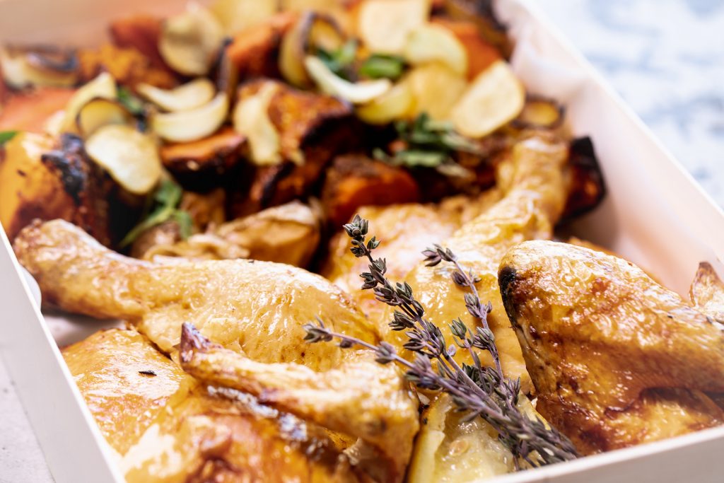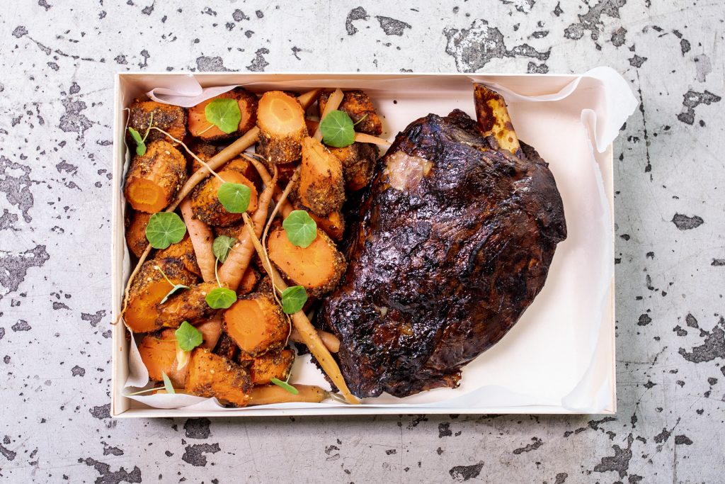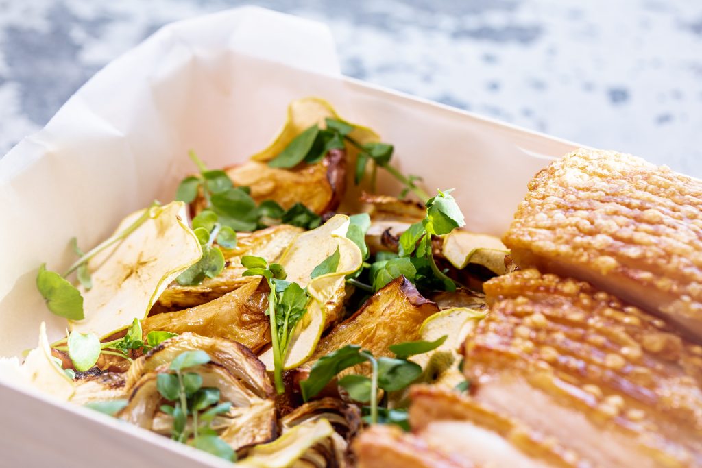 Think slow-cooked lamb shoulder with roast veggies, or crispy pork belly with roasted fennel, carrot and house-baked apple sauce for your family.