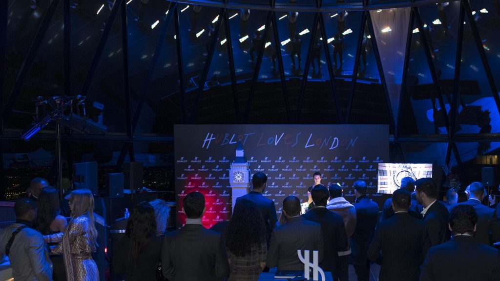 The watch was launched at a star-studded event held at The Gherkin. The evening was hosted by Omar Choudhary, Hublot Brand Director UK, and attended by Hublot Friend of the Brand Chris Froggatt. Hublot also welcomed football coach and former professional football player Patrice Evra. Guests enjoyed a set by DJ Matt and mingled over canapés and cocktails.
