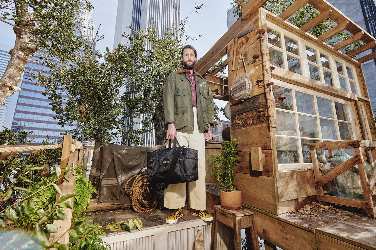 As the first collection in Gucci Circular Lines, Off The Grid champions the regeneration of materials and textiles, wasting less and minimising the use of new resources. The five product ranges covering accessories, ready-to-wear and travel pieces are made of recycled, regenerated, organic, bio-based, and sustainably sourced materials.