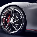 Whilst the car’s electronic brain serves up a thrilling new experience in dynamic driving, its braking system offers the back-up to that performance. Massive, carbon-ceramic 6-piston brakes (390 mm at the front and 390 mm at the rear) provide fade-free deceleration, and hugely effective brake regeneration to the battery will be engineered into the system. The active rear wing features an air brake function.