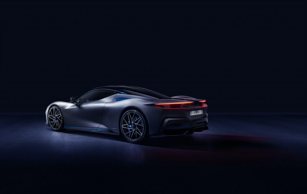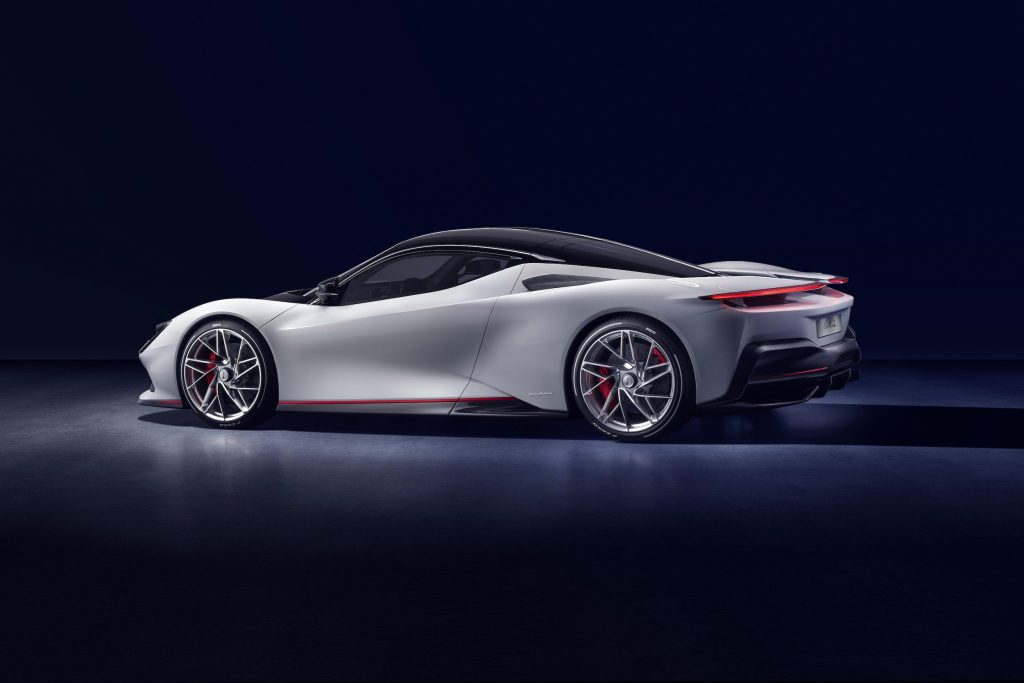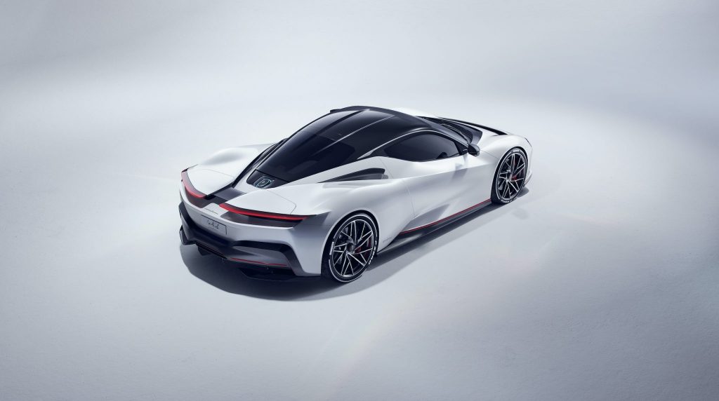 The result will be a staggering performance for a road car: power and torque of 1,900 hp and 2,300 Nm, providing acceleration from 0 to 100 km/h in less than two seconds (faster than a current Formula 1 car), 300 km/h in less than 12 seconds and the ability to achieve a top speed of up to 350 km/h.1 All with a potential zero-emissions range of up to 450 kilometres and an extreme focus on drivability.