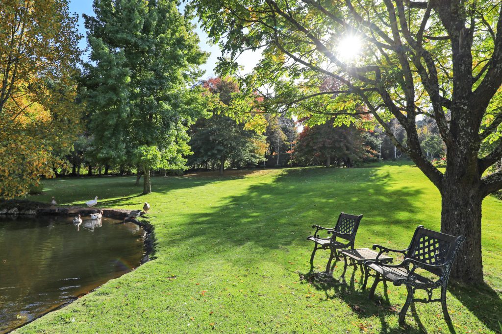 Highly acclaimed by the media, Tieve Tara’s unique botanical paradise is a treat for nature and garden lovers alike. It juxtaposes native elements of towering eucalyptus, ferns, and a creek with the carefully planned and designed landscape that allows residents and visitors to meander along winding paths, admire Monet-like scenes of bridges and lakes while marvelling at majestic trees and rare plant specimens.