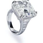 Lot 46, the spectacular platinum and diamond ring featuring a square emerald-cut diamond weighing 25.02 carats, delighted clients at the viewings in Melbourne and Sydney before selling at auction to an absentee bidder in a historic moment for Leonard Joel.