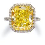 Other highlights from the night included lot 24, a rare pair of platinum and diamond earrings, the square emerald-cut diamonds, weighing 10.03 and 10.00 carats respectively, that sold for AU$650,000 IBP, lot 49, a block of impressive platinum, 18ct gold, fancy intense yellow diamond and diamond ring that sold for $287,500 IBP, and lot 73, an exceptional platinum and diamond ring, the brilliant-cut diamond weighing 10.07 carats that sold for AU$275,000 IBP.