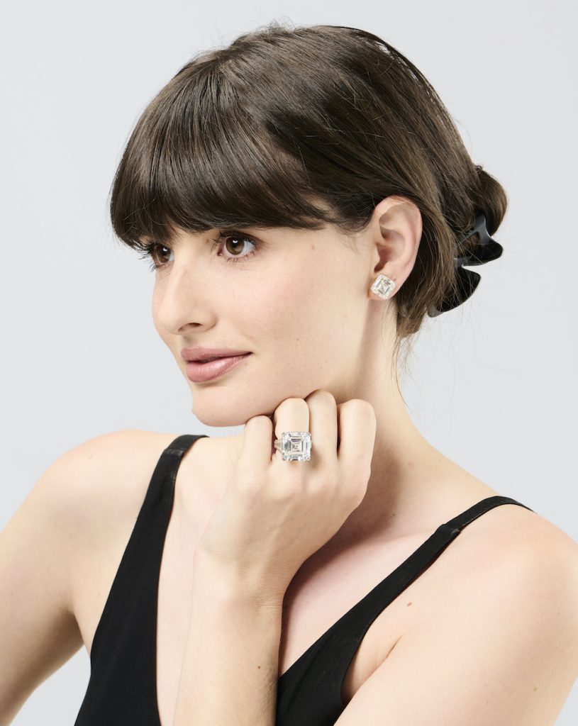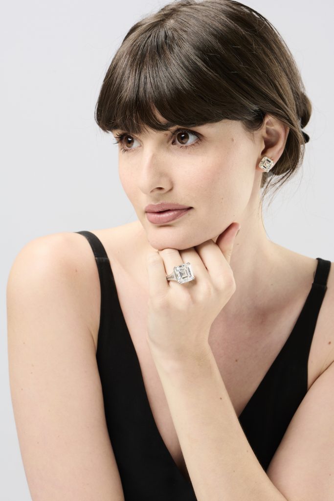 Lot 46, the spectacular platinum and diamond ring featuring a square emerald-cut diamond weighing 25.02 carats, delighted clients at the viewings in Melbourne and Sydney before selling at auction to an absentee bidder in a historic moment for Leonard Joel.