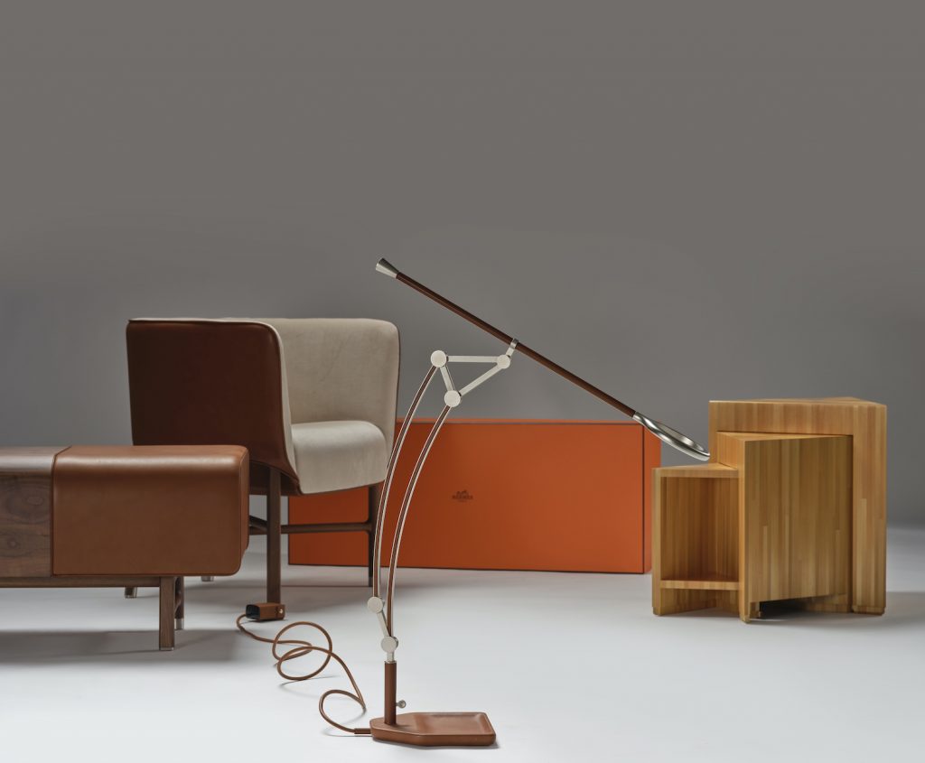 Furniture and objects from Hermès, indisputably one of the world’s preeminent luxury brands and one of the great houses for master craftsmanship across many categories, rarely find their way to public auction. Leonard Joel is thrilled to present “An Important Collection of Hermès Interiors”, taking place on 13 September, featuring pieces from the brand’s first-ever interiors range, launched at the Milan furniture fair in 2011. The pieces are all brand new and retain their original custom Hermès packaging, along with hand-made protective shipping crates and authenticity booklets.