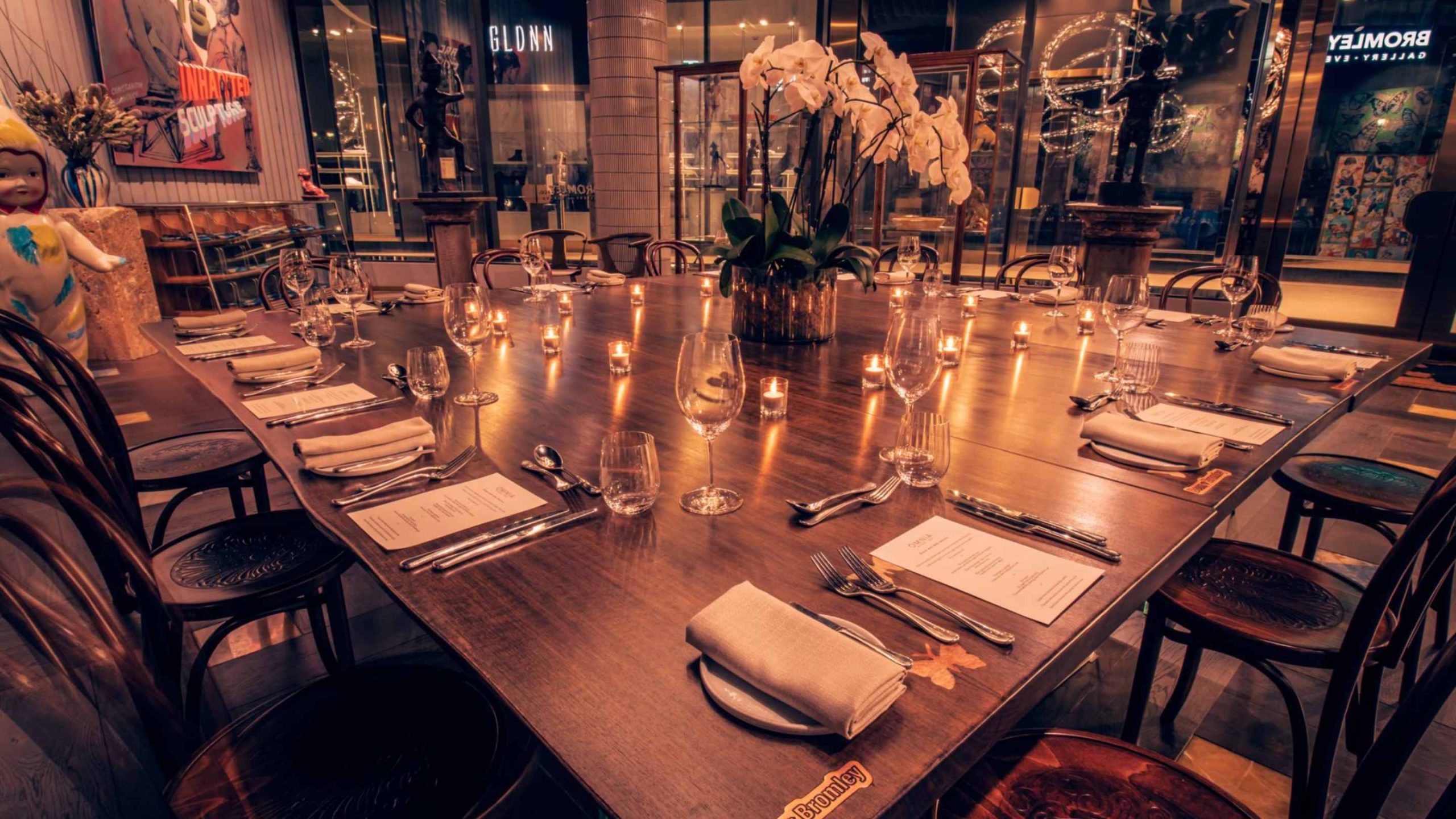With a capacity for 60 seated guests or 120 guests for cocktails, the gallery features opulent light fixtures that surround the space, while the walls are adorned with original art pieces from the renowned artist, David Bromley. A hand-selected team of culinary experts from Michelin-starred restaurants throughout the world meticulously curate menus to rival the finest dining establishments, using only superior, seasonal ingredients, each meal can also be paired by a flawlessly matched wine selected by the in-house sommelier.