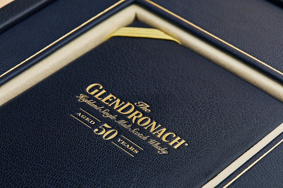 Each hand-numbered bottle of The GlenDronach Aged 50 Years is presented in a luxurious, genuine leather case accompanied by an embossed leather booklet detailing the distillery history, tasting notes, and unique craft.