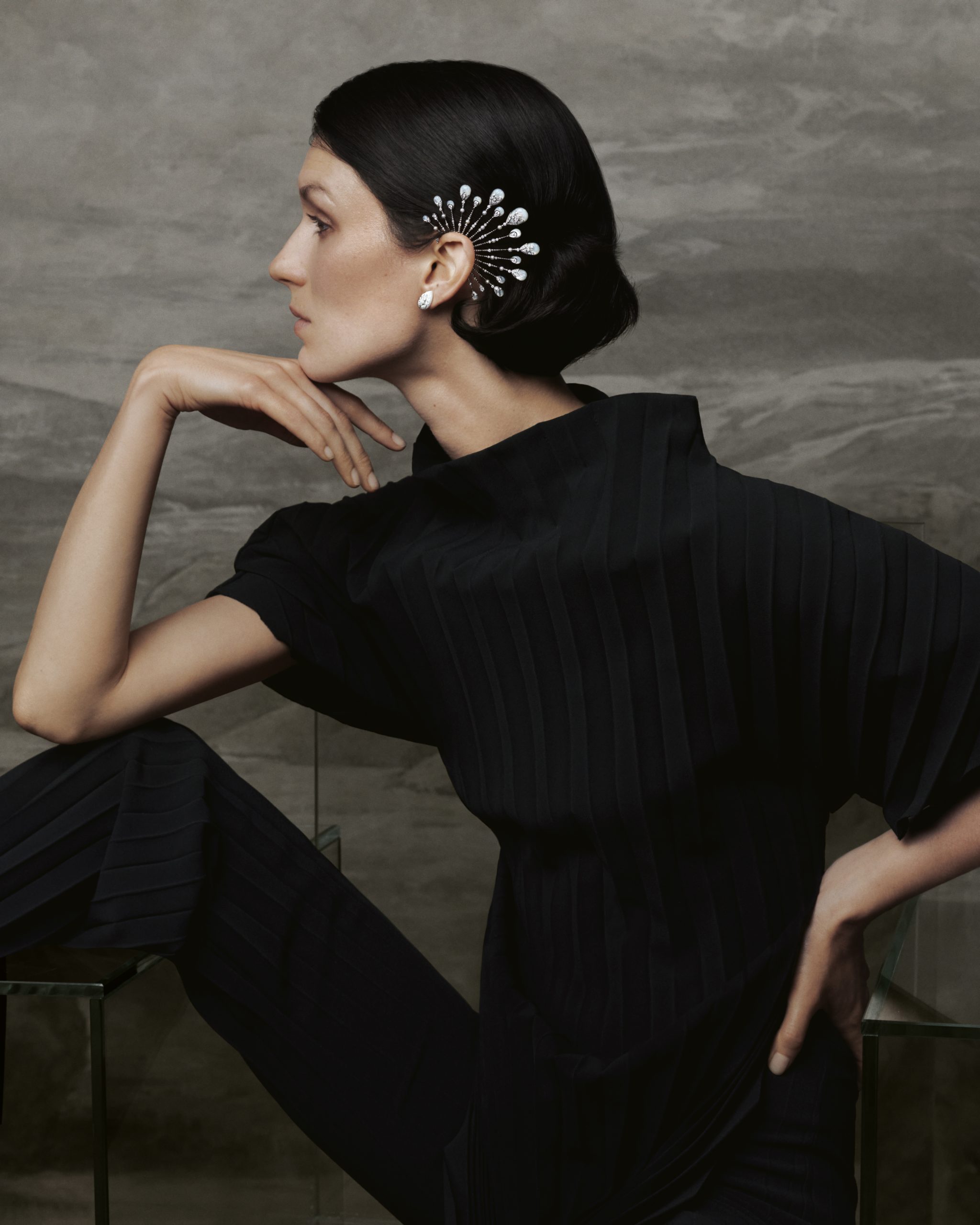 As with each History of Style collection launched by Boucheron in January, Choisne transposed designs from the Maison’s archives into the 21st century, inspired this time by the 149 designs crafted for the Mahajara. The creative studio has highlighted design elements that symbolize ancestral India, incorporated traditional techniques, while colours have faded into a monochrome metamorphosis; all for women and men keen to express their personality and their own style through striking Boucheron creations.