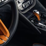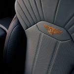 The cabin is trimmed in Beluga and Porpoise, providing a dark, night-sky-esque backdrop for the accents of colour. Unique satin black speaker grilles, of the class leading ‘Naim for Bentley’ sound system, discreetly hide in the shadows, with the Naim centre badges illuminated like stars in the night. The unique and bespoke fluting in the door recesses can also be seen emanating from the bright orange Bentley seat emblem towards the outer edges of the shoulder area. Orange micro piping trails the seat edges and encircles the floor-mats.