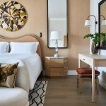 Considered the gemstone capital of the world, almost half of the world’s gemstones are found in Southern Africa. Sparkling accents are added throughout the guest rooms, with details of Tiger’s Eye drawer pulls and facetted artworks adding an ornate touch to modern African luxury. Gemstone-shaped shields, made by artists that are community figures in the Eastern Cape of South Africa, adorn Marina Rise’s headboard walls and are symbolic of the Sun and Moon. The beaded pots in all the rooms were created by Zimbabwe-born Richard Madongwe and his team of bead artists. The jars are representative of the vessels carried on the heads of the people of Africa, transporting the lifeblood of earth – water – to their families.