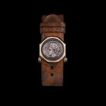 The Gladiators Eternity bracelet, for example, houses a miniature of the great Italian Colosseum under sapphire crystal glass with an authentic Roman coin from 124 BC used to decorate the buckle. The other half of this story – the Gladiators Quantum watch – features a softened octagonal titanium case coated in gold PVD, and adorned with a Sea bass skin leather strap, rough diamonds, and bronze fighters locked in battle on the dial.