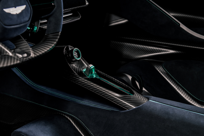 The cockpit ergonomics of Valhalla has also benefited by taking direct cues from Formula 1®, in that the driving position has been optimised with support from AMPT to provide the driver with race car level control in order to maximise the pleasure of driving. The driver’s heels are raised by a false floor, which also contains electronic modules, and the unique carbon fibre bucket seat can be reclined to a greater angle to achieve a seating position more closely aligned to the AMR23 race car, whilst still offering road car comfort. This aids in keeping a low roofline and ensures the driver feels truly connected to the car.